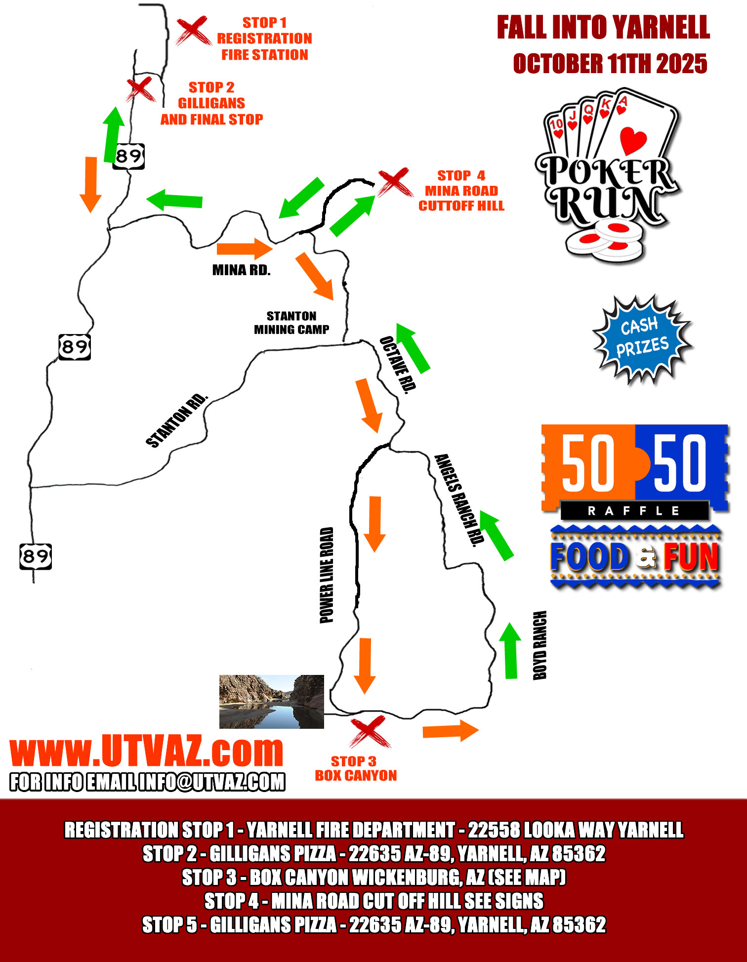 Our ride will feature some of the areas oldest and newest restaurants, bars and more. Come out and support a great charity and have a blast with us! Staging areas will be provided in Yarnell for anyone bringing their UTV on a truck and trailer.